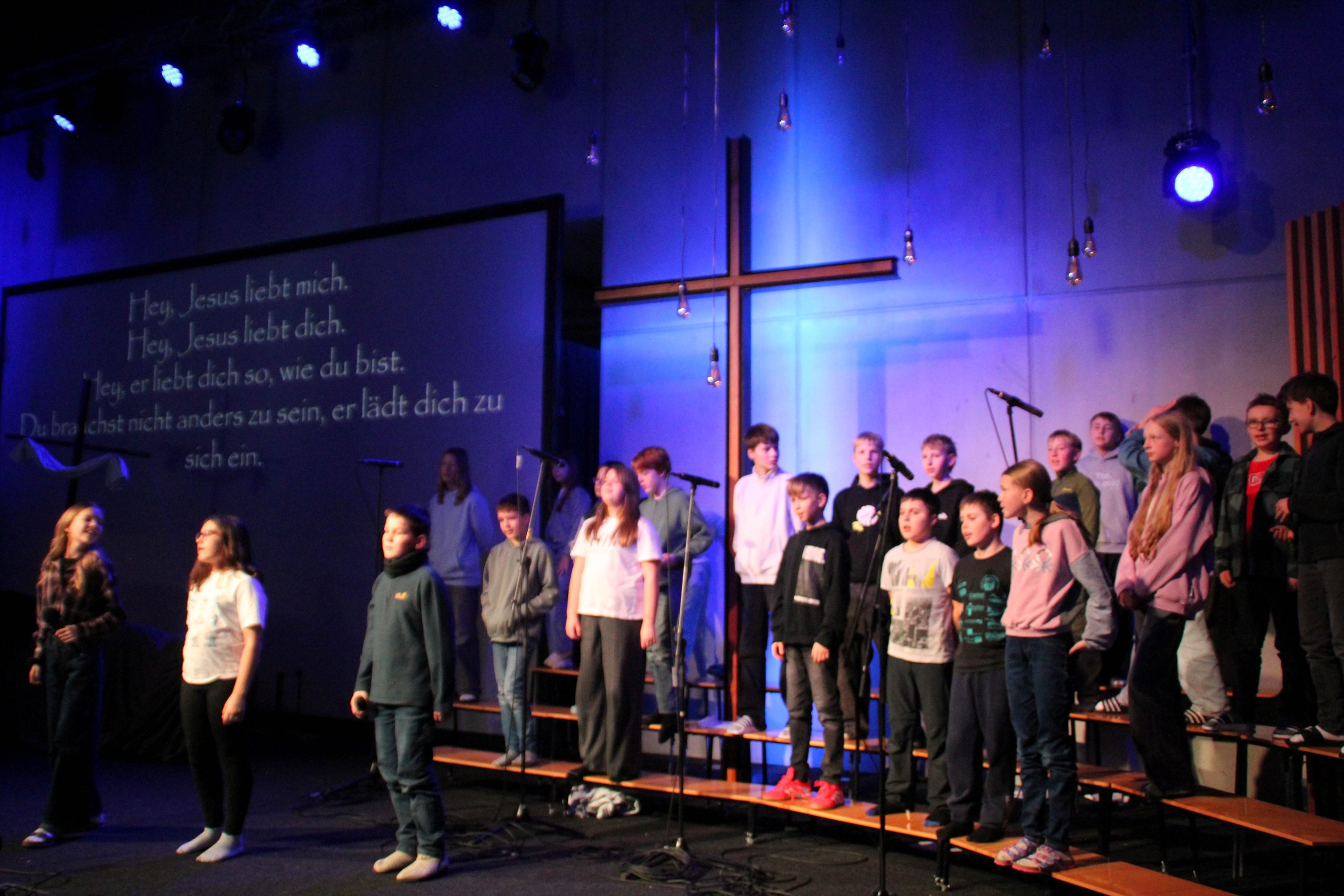 „Bei unseren FES-Musik­the­ater­pro­jek­ten geht es ganz viel auch darum, dass die Kinder beson­dere Erfol­gser­leb­nisse haben, dass sie über sich hin­auswach­sen – und als Klas­sen­ge­mein­schaften und Schul­stufe zusam­menwach­sen“, freut sich Schulleit­er Andreas Borkeloh. „Unsere Schüler üben, wach­sen in die Geschichte und Musik rein – und erleben mit allen Sin­nen diese bib­lis­che Geschichte über Petrus und die anderen Jünger, die Jesus haut­nah begleit­en durften. Und nach fünf Tagen ste­hen sie auf der großen Bühne vor hun­derten Leuten – ein echt­es päd­a­gogis­ches Pro­jekt mit Musik und Spaß – und Mehrwert“!